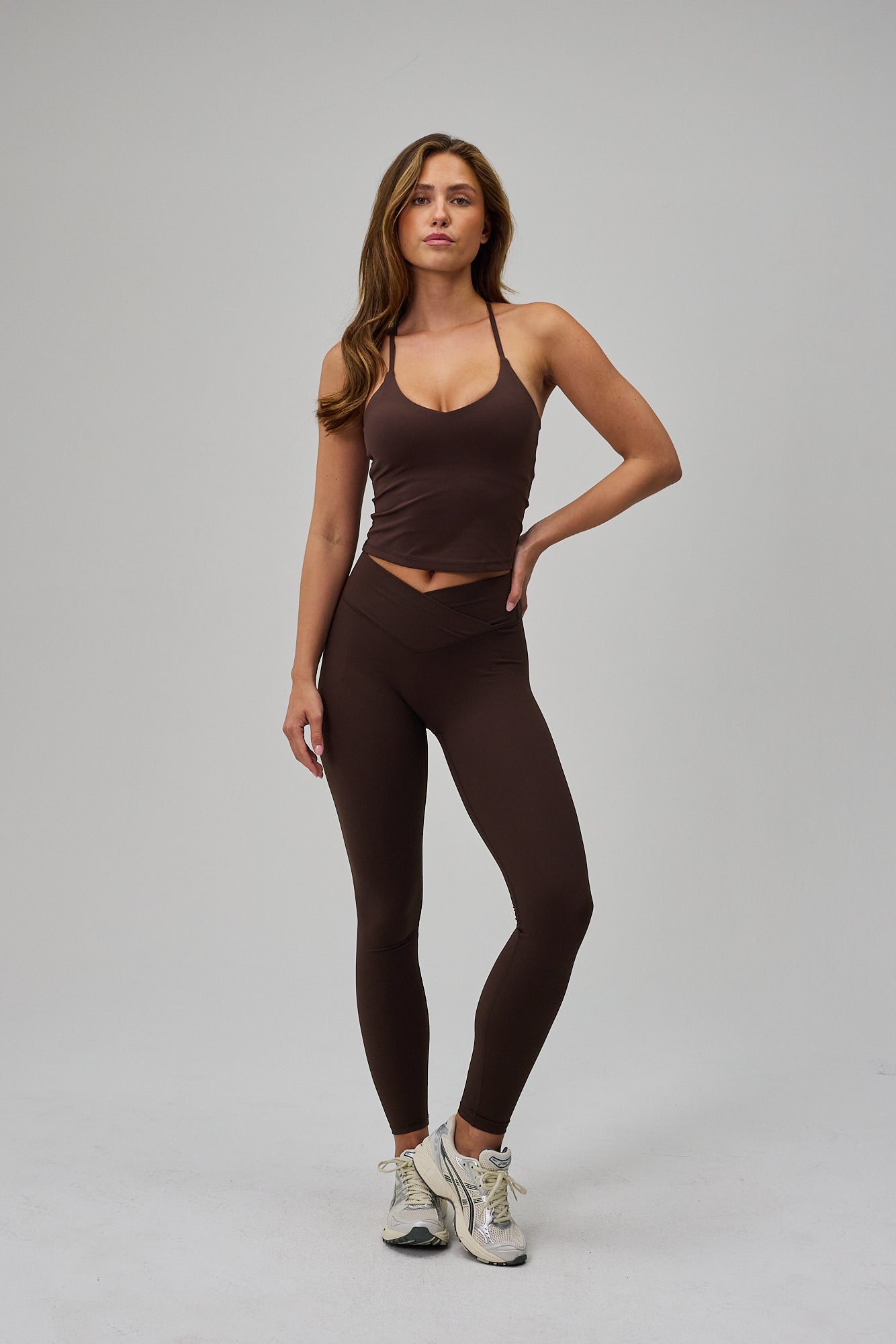- Model wears Wrap Tights, Black and wears size XS at 172 cm.