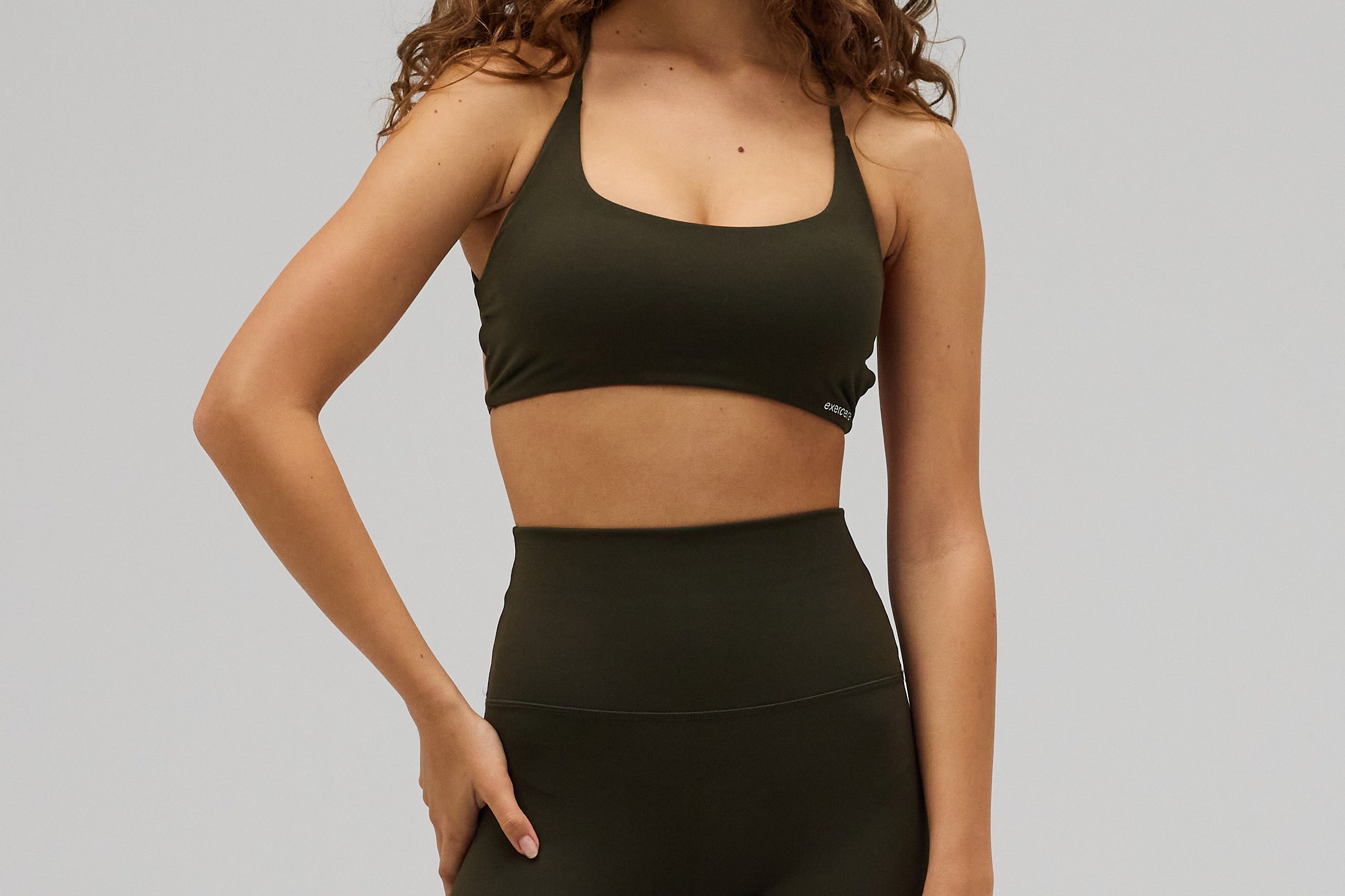 The design of the sports bra combines the simple and sporty with the elegant and feminine. The fit is ideal for both fitness training and yoga. The material is breathable and comfortable to wear.