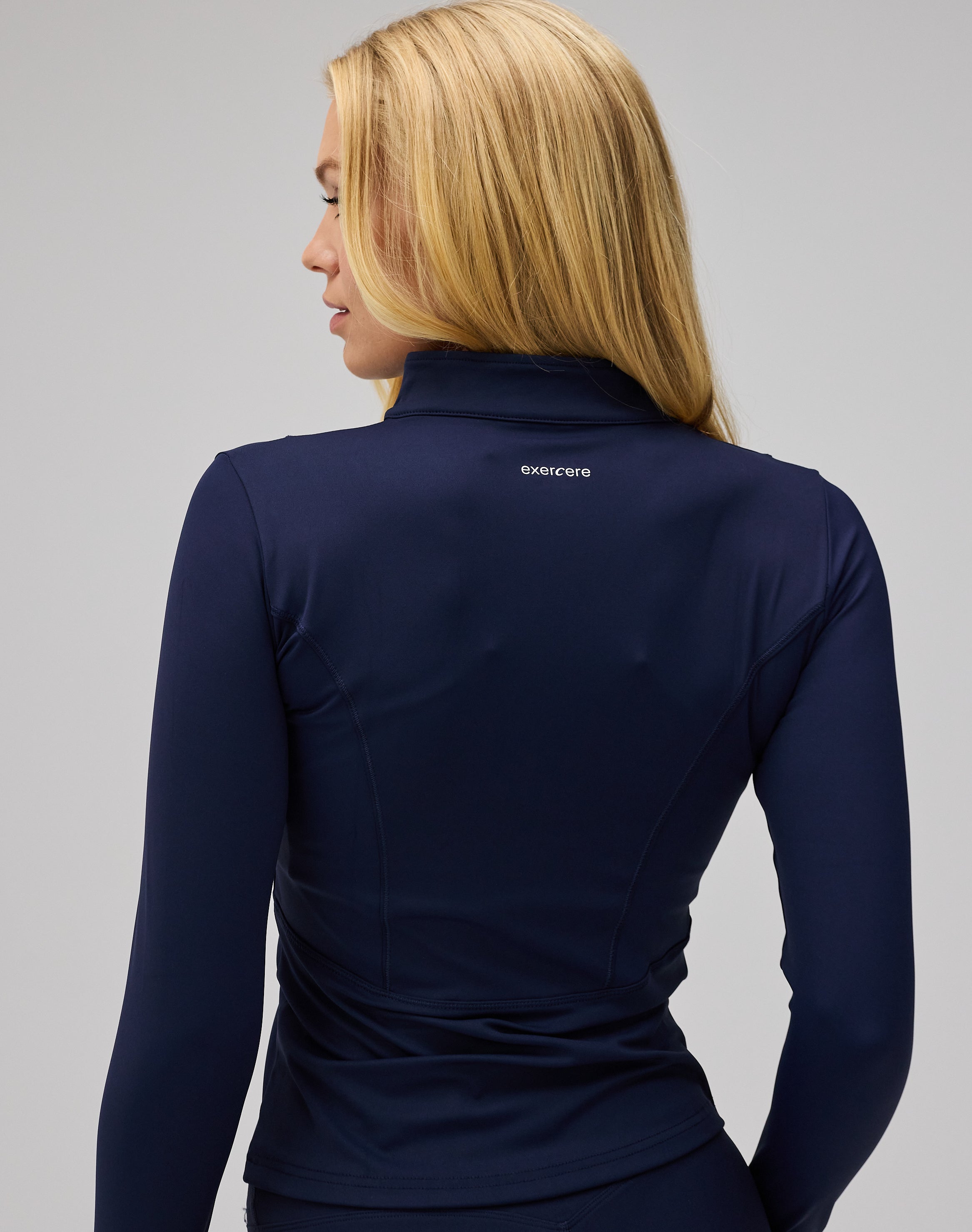 - Model is wearing Hyper Zip Blouse, Navy and wears size S/M
