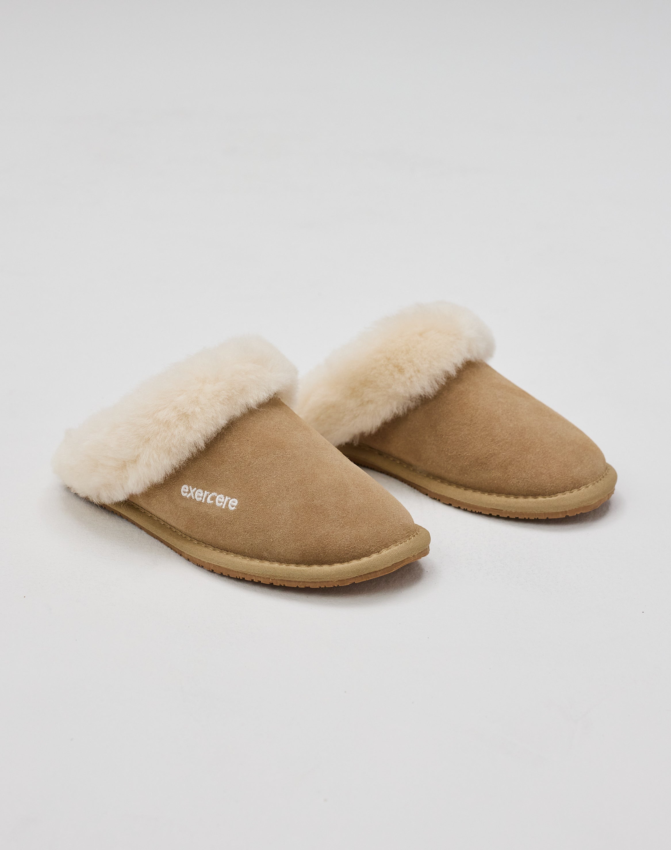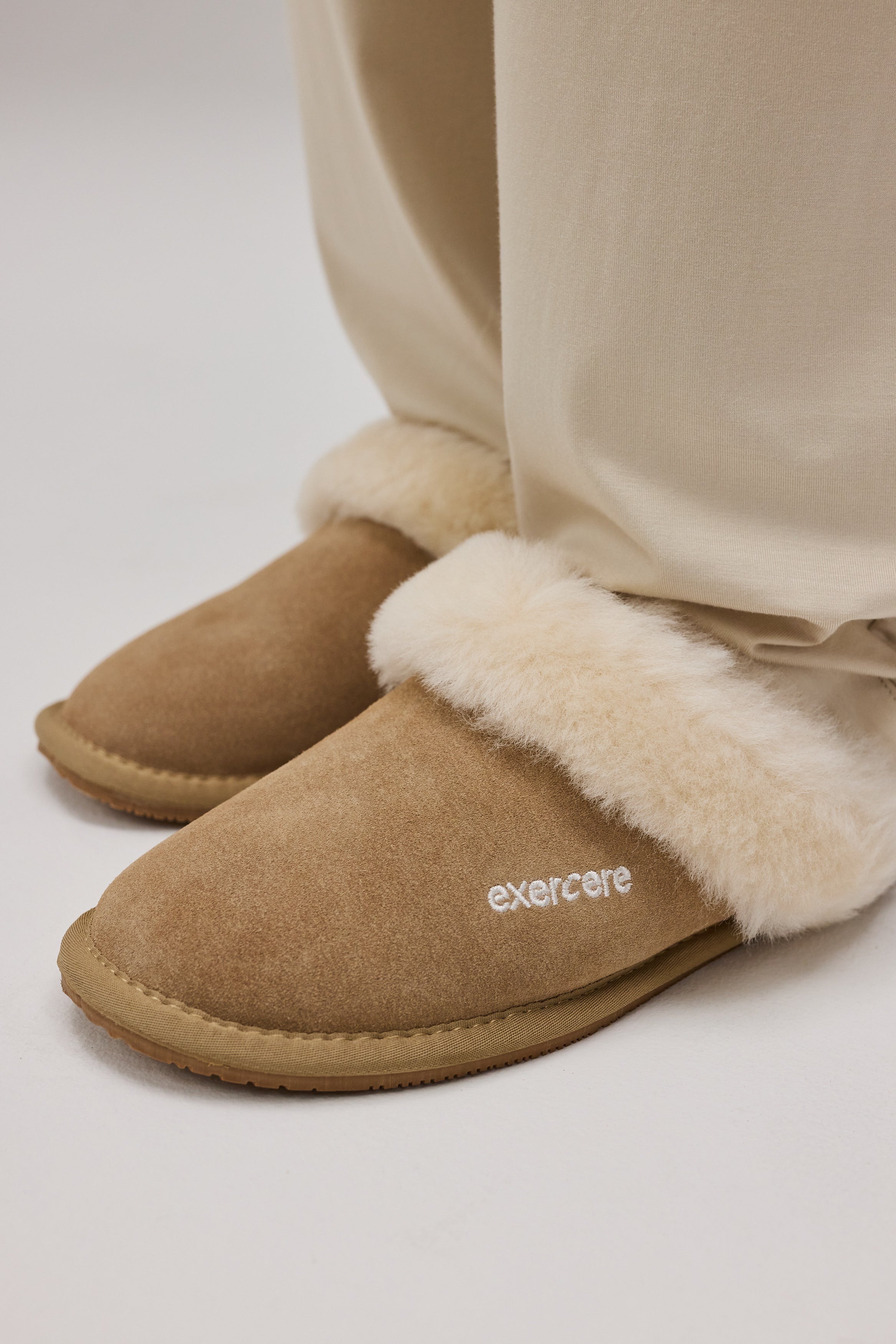 Suede Slippers combine classic simplicity with comfort and a timeless expression. Crafted from soft suede with a rounded toe, flat sole, and the Exercere logo subtly embossed on the side, the design is elevated by its clean and understated details.