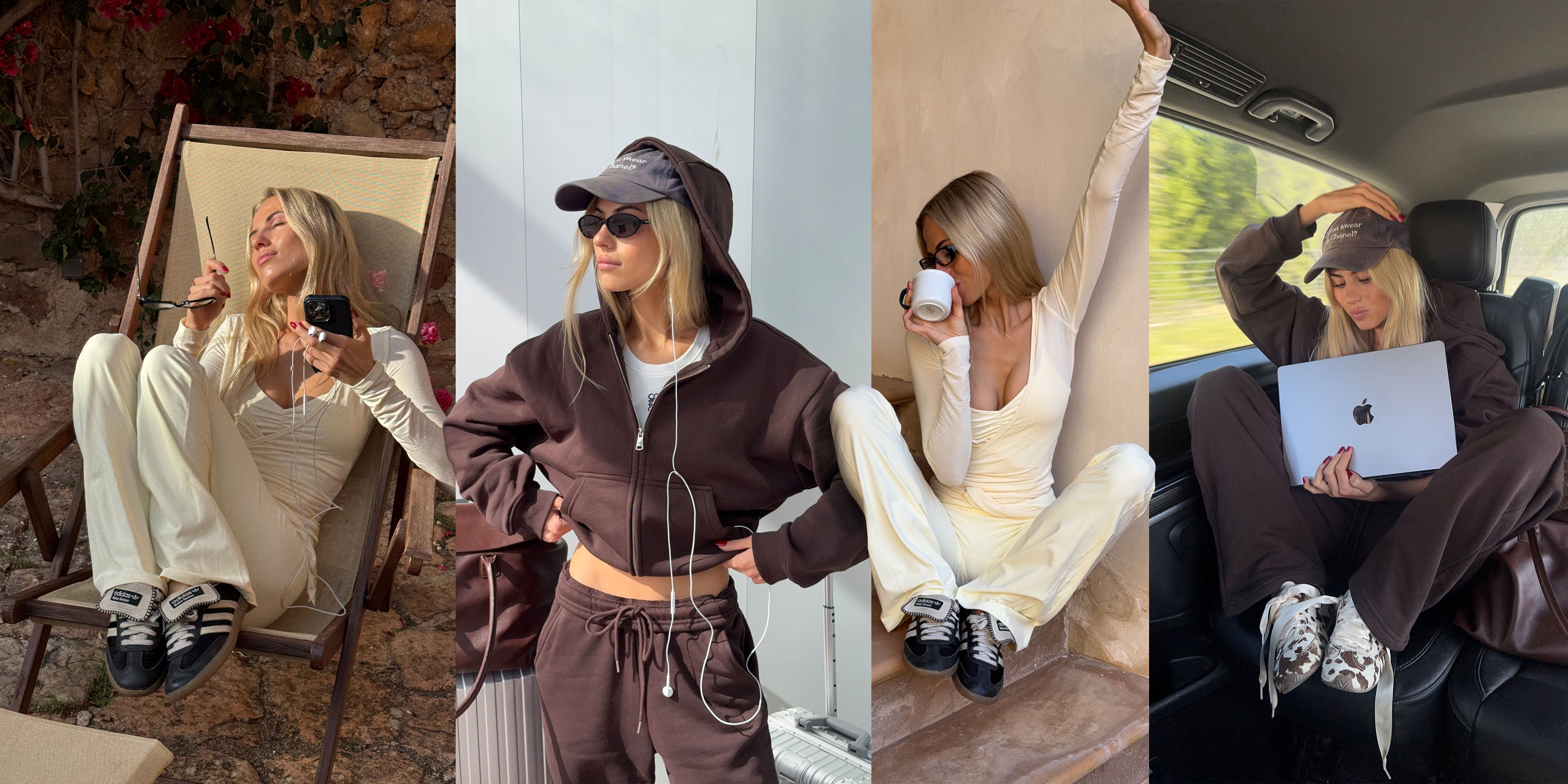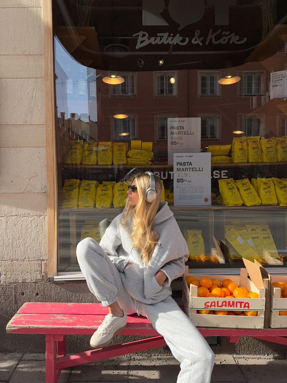 And when it’s time to wind down, nothing beats the Loungewear in Grey Mélange. The hoodie and sweatpants are my ultimate go-to for chilling at home or throwing on after a workout—so soft, cozy, and effortless.