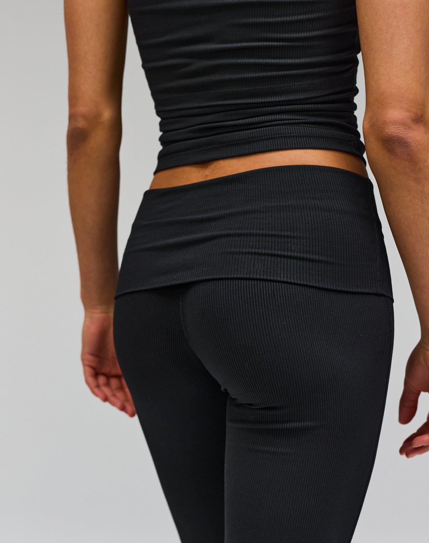 Our Fold-over Pants are made from an elastic and ribbed fabric that provides the perfect fit and freedom of movement for any activity. The soft and breathable material makes them ideal for everything from training to relaxing moments at home. Compared to our Flare Yoga Pants, our Rib Pants stand out with their unique design and material - while both types of pants offer comfort and freedom of movement, our Rib Pants offer an extra dimension of style and versatility.