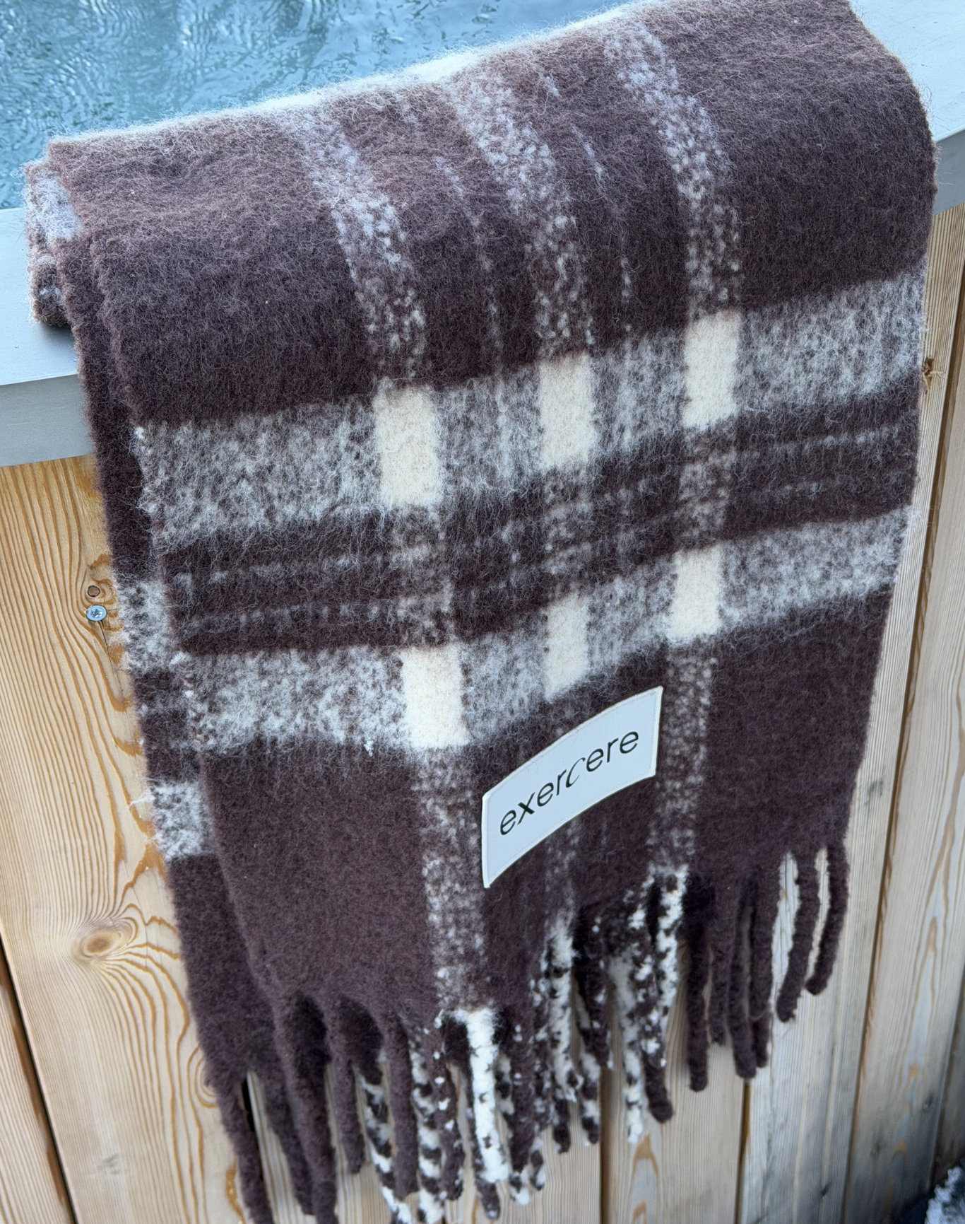 Det bløde materiale føles behageligt mod huden og giver en varm og komfortabel fornemmelse på kølige dage. Et vævet Exercere-logo fuldender designet med en underspillet detalje. Limited Check Fringe Scarf er en klassisk accessory, hvor komfort, funktion og et elegant udtryk mødes i en harmonisk helhed.