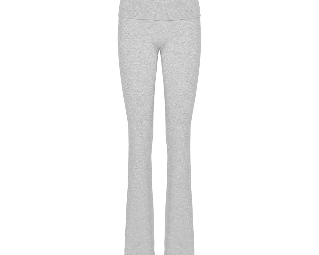 Rib Fold Over Pants - Grey Melange