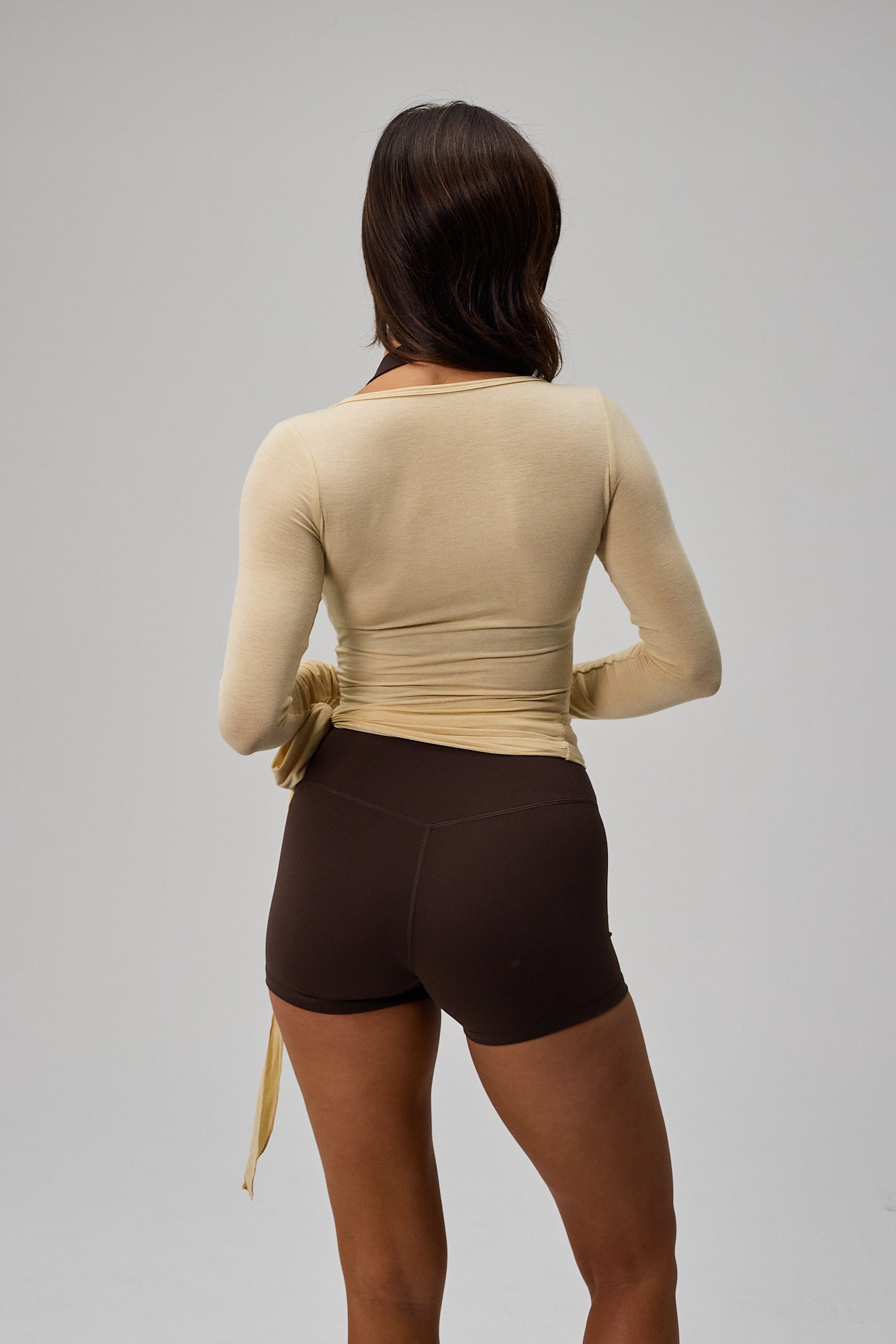With close-fitting sleeves and adjustable straps, you have full control over the fit. You can tie the ribbons in your own way so that the blouse fits as you wish. It is ideal for soft sports such as yoga and pilates, but it can also be easily integrated into your daily wardrobe.