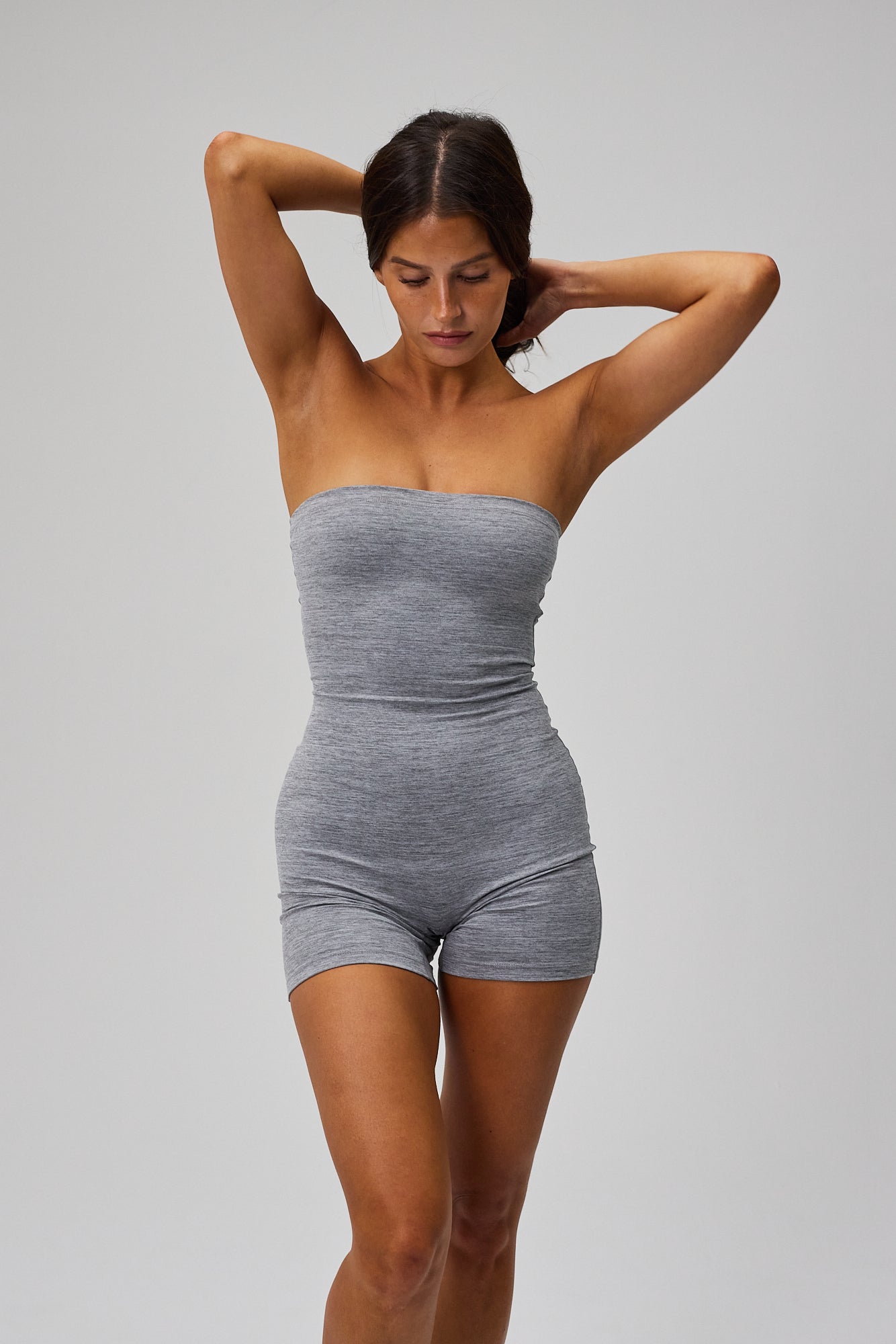The strapless construction features a discreet non-slip edge at the bust that keeps the playsuit in place - whether you're in motion or simply enjoying peace at home. The material is soft, flexible, and breathable, ensuring high comfort all day and making it a comfortable go-to piece for both light active and relaxed everyday life.