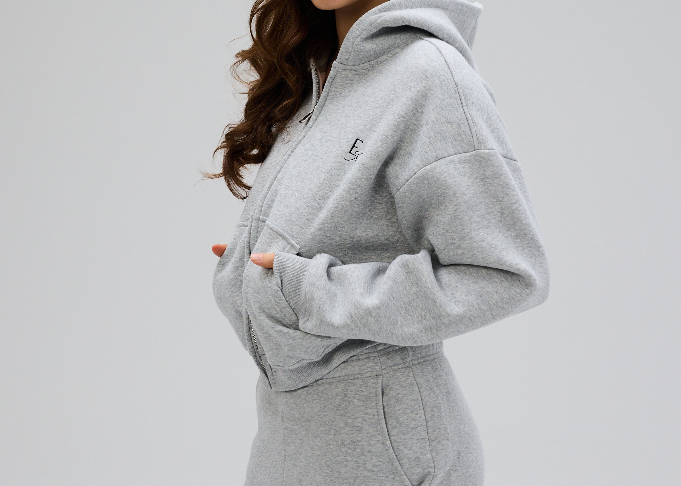 Cropped Zip Hoodie - Pecan Brown