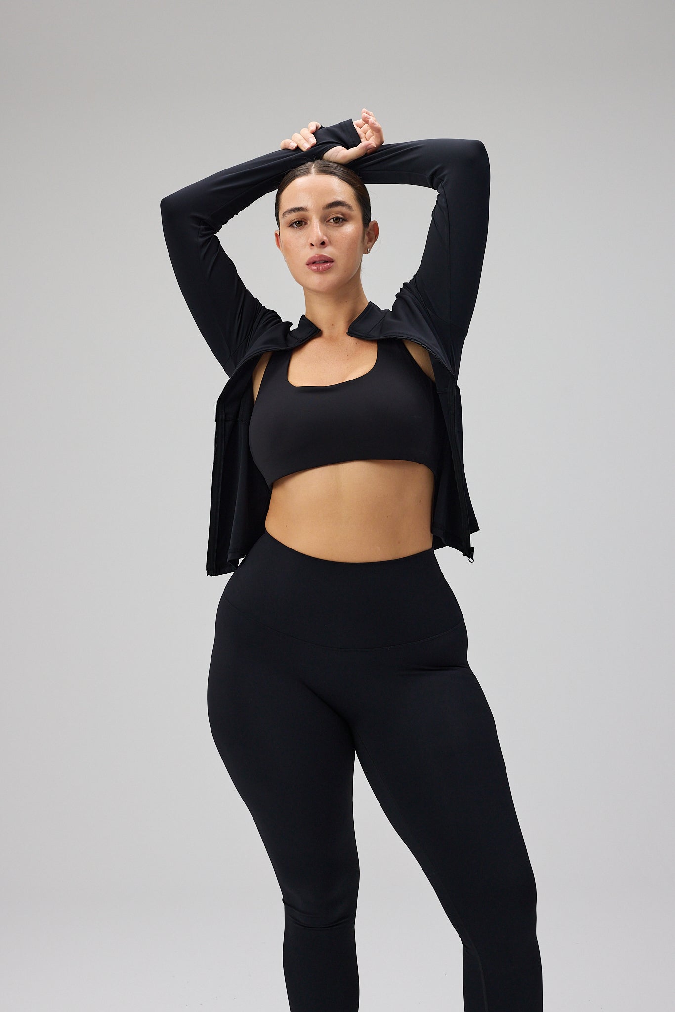 - Comfortable - Long sleeve and thumb strap - Two different colors - 75% Nylon 25% Elastane - Cropped and slim fit - Model is wearing Hyper Zip Blouse, Black and wears size M/L