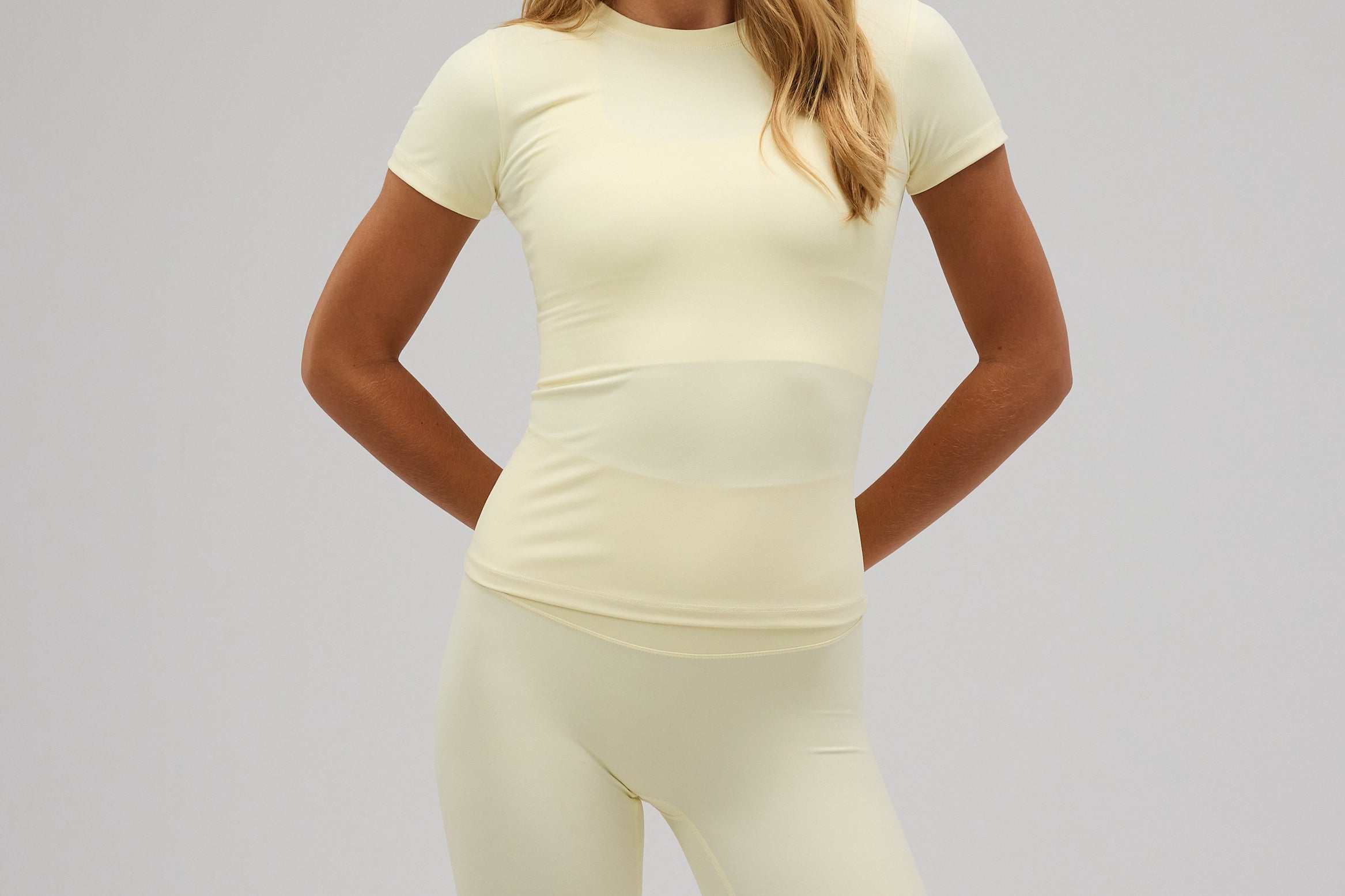 The simple yet versatile design makes it easy to style the Neaty Tee with other items from your wardrobe. Pair it with your favorite tights for a workout or create a chic and casual look by pairing it with a pair of jeans. The tee retains its elasticity and shape over time, making it a reliable go-to season after season. Whether you're on the go or just enjoying a casual day at home, the Neaty Tee will feel like a dream to wear.