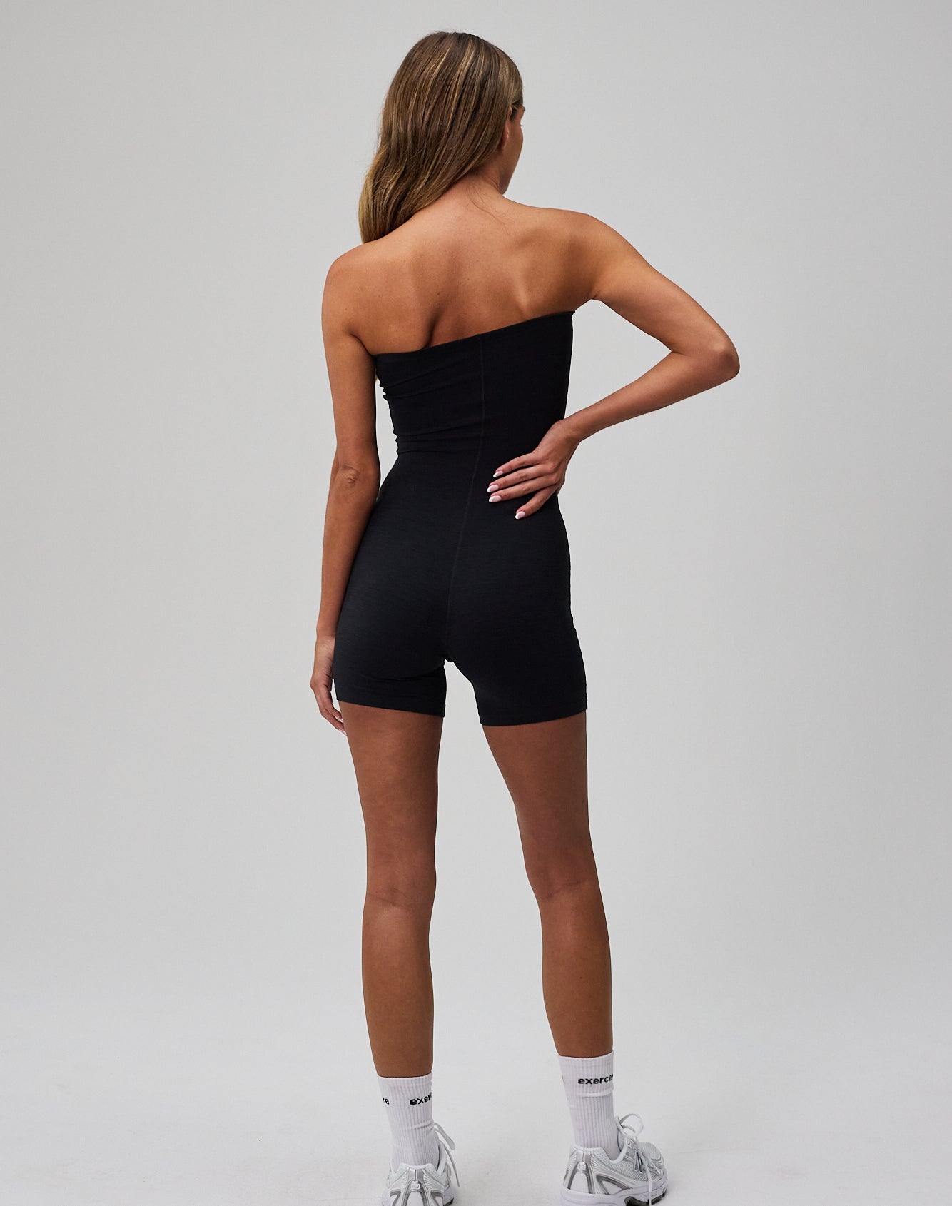The strapless construction features a discreet non-slip edge at the bust that keeps the playsuit in place - whether you're in motion or simply enjoying peace at home. The material is soft, flexible, and breathable, ensuring high comfort all day and making it a comfortable go-to piece for both light active and relaxed everyday life.