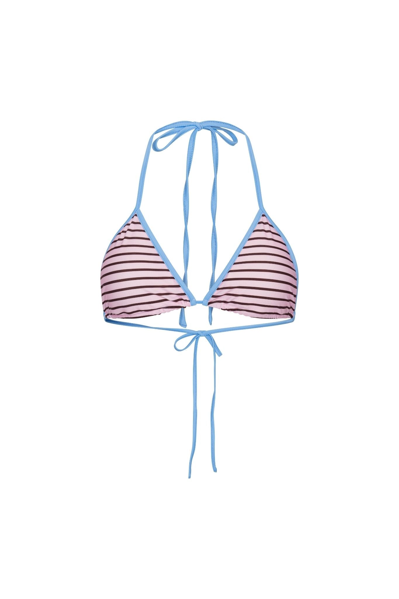 The Amara Bikini Top is designed with a fresh and feminine look, where contrasting colors and striped details create a vibrant and summery look. The light blue shades add a light and balanced touch that emphasizes the stylish design.