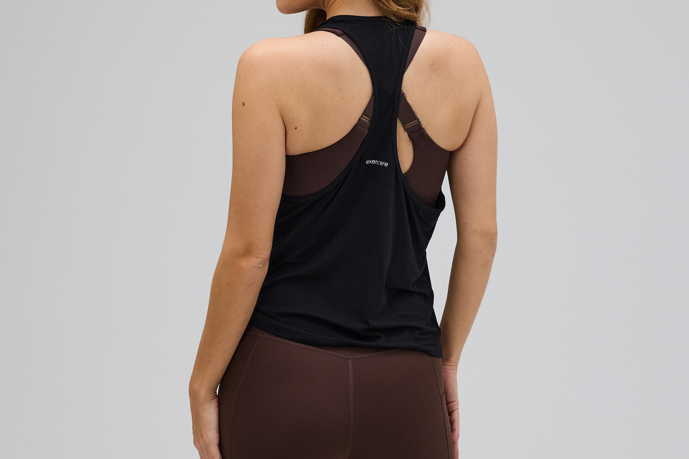 Det lette materiale falder naturligt mod kroppen og skaber en behagelig, åndbar oplevelse, mens racerback-designet sikrer bevægelsesfrihed og et klassisk, sporty look. Et subtilt Exercere-logo på ryggen fuldender det enkle og tidløse design. Flow Racer Tank Top er et alsidigt træningslag, skabt til aktivitet, hvor lethed, komfort og et rent udtryk er i fokus.