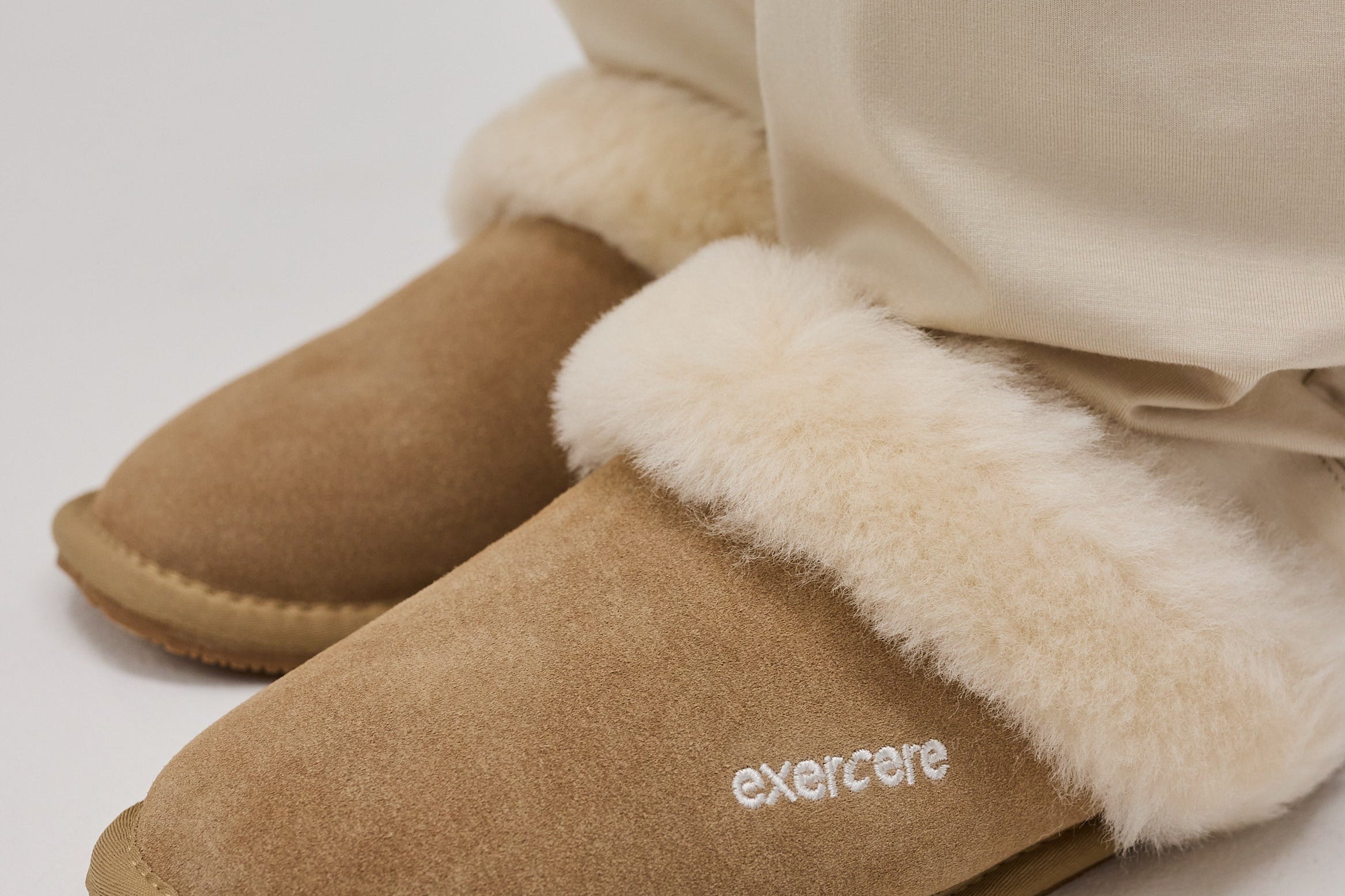 Suede Slippers combine classic simplicity with comfort and a timeless expression. Crafted from soft suede with a rounded toe, flat sole, and the Exercere logo subtly embossed on the side, the design is elevated by its clean and understated details.